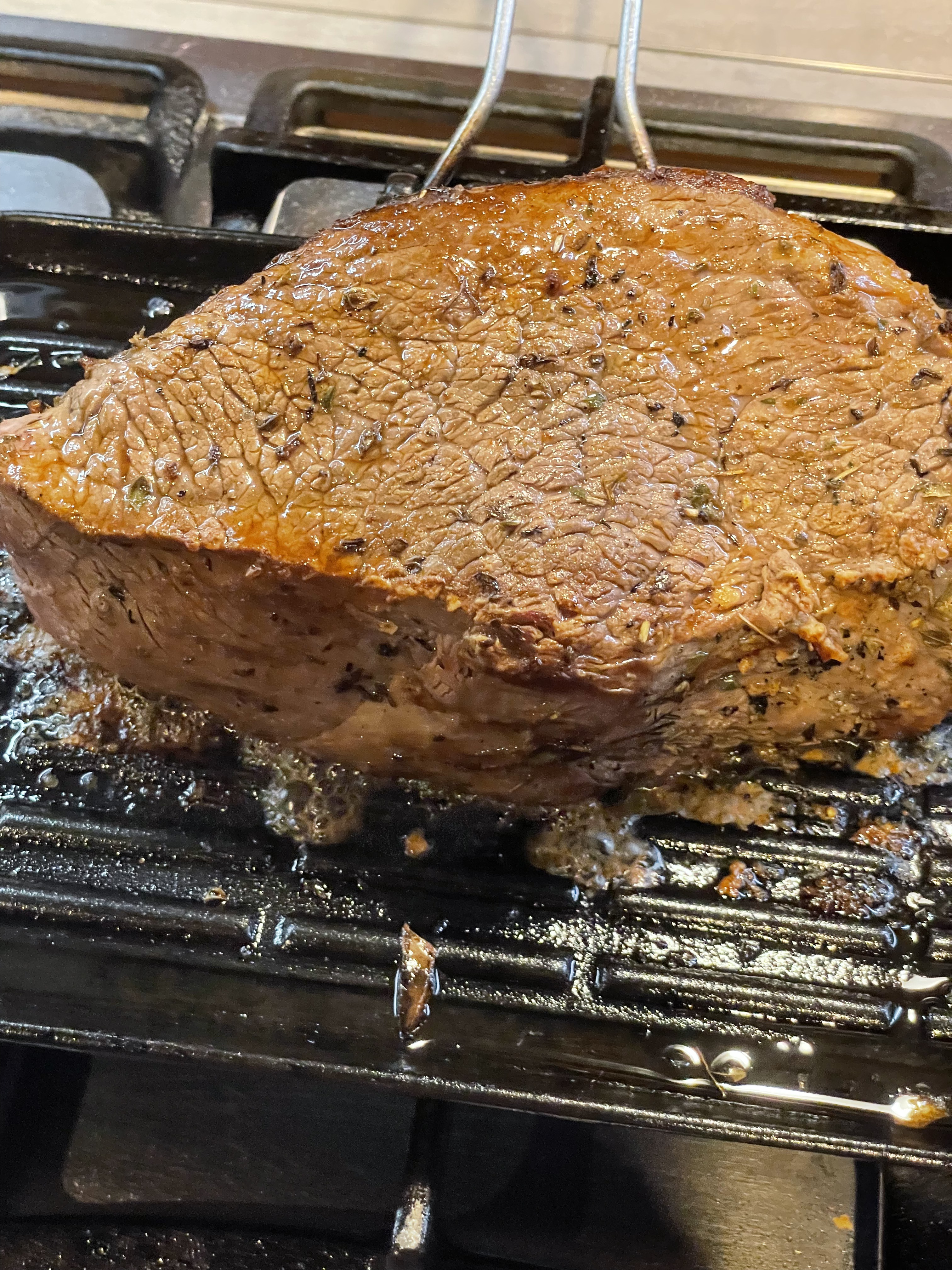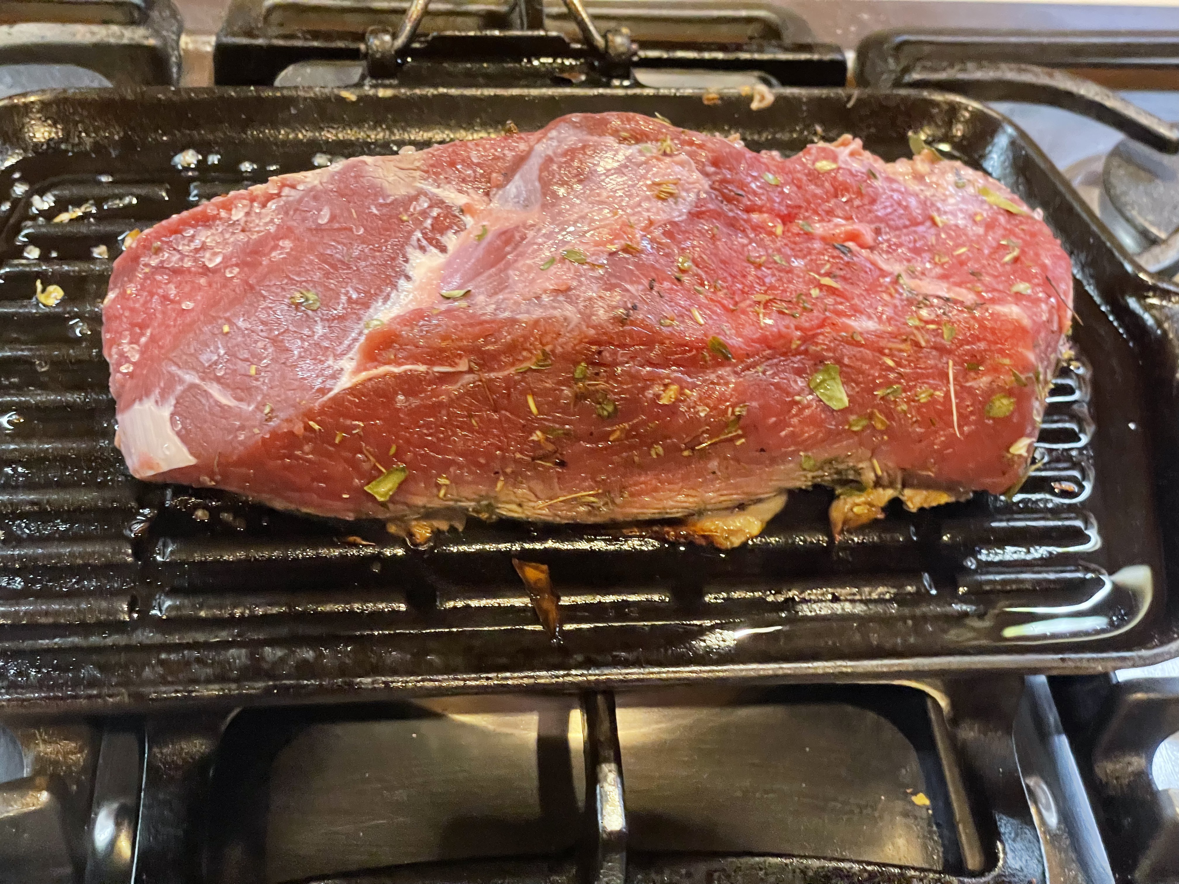 Bistecchiera in ghisa fredda Carne lato grasso sotto Fiamma medio-bassa